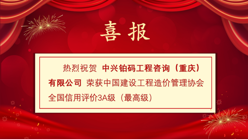 喜报 | 我司荣获中国建设工程造价管理协会全国信用评价3A级